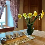 The apartment has an equipped kitchen with an electric kettle, a fridge, and a toaster provided. Brnik airport is 110 km away from this apartment.